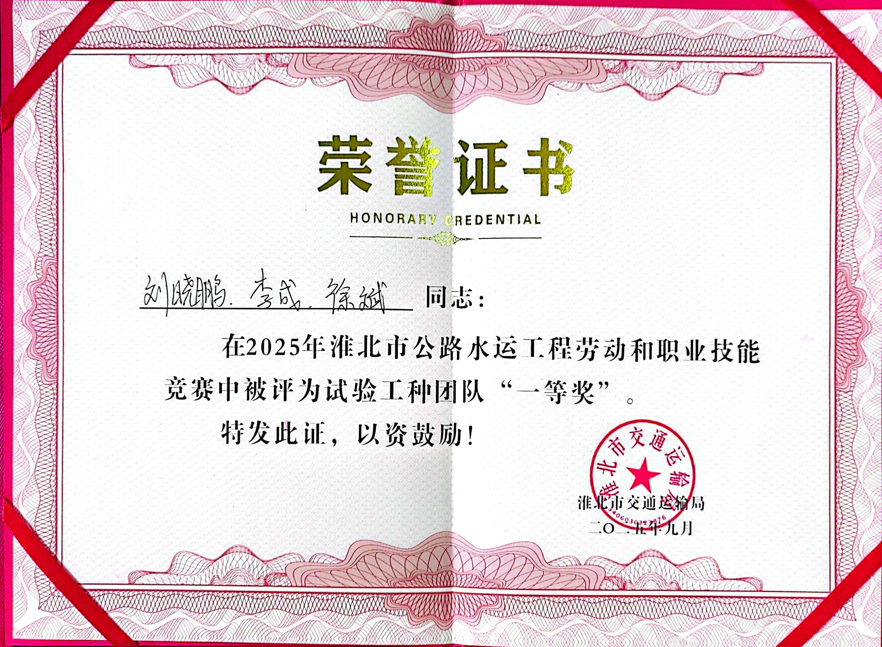 喜報(bào)!環(huán)通公司在2025年淮北市公路水運(yùn)工程勞動(dòng)和職業(yè)技能競(jìng)賽中斬獲佳績(jī)