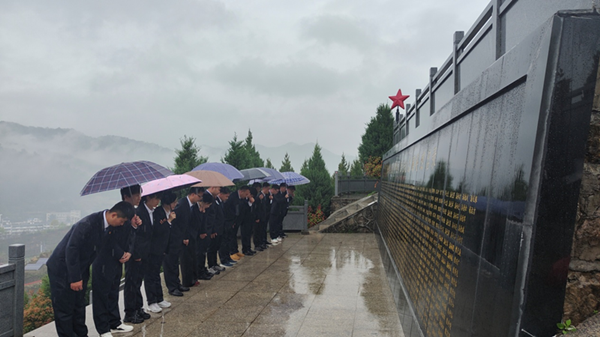 清明綿雨細,山城追思遠。4月3日一早,全體黨員、積極分子冒雨來到金寨縣革命烈士紀念園開展紀念烈士活動。