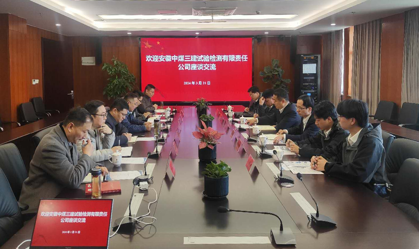 3月21日上午,中煤礦山建設集團有限責任公司機電處處長、試驗檢測公司執(zhí)行董事支浩飛帶隊赴建工檢測拜訪交流。建工檢測黨委委員、副總經理、工會主席郭楊,黨委委員、副總經理、總工程師葛道文熱情接待并舉行會談。