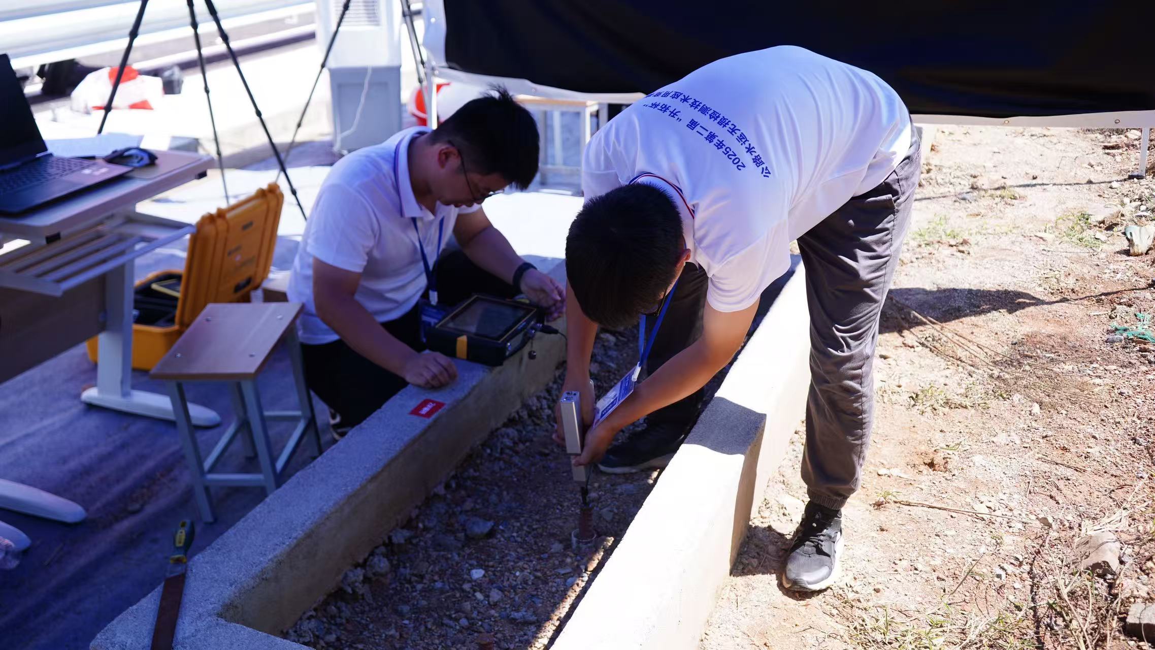 本次環(huán)通公司參賽團(tuán)隊以魏科為領(lǐng)隊,陳旭東、周文君兩位一線技術(shù)骨干為隊員。競賽中,團(tuán)隊在閉卷機考形式的理論知識環(huán)節(jié)精準(zhǔn)掌握行業(yè)規(guī)范要點,在預(yù)應(yīng)力孔道灌漿質(zhì)量檢測、錨桿長度檢測等技能操作項目里,嚴(yán)格依照競賽規(guī)程完成數(shù)據(jù)采集、分析及報告填寫,憑借規(guī)范操作與準(zhǔn)確成果獲得評委一致肯定。